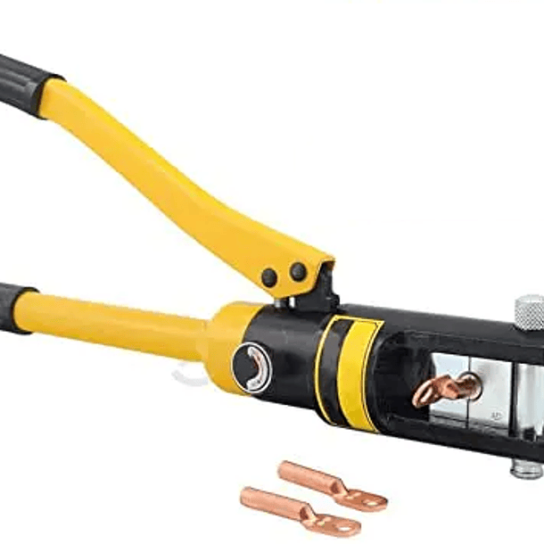 Herramienta profesional de crimpado hidráulico diseñada para terminales de cobre y aluminio en cables eléctricos. Ideal para trabajos eléctricos de alta exigencia, esta prensa hidráulica incluye dados intercambiables que permiten un rango de apriete de 16 a 240mm² (equivalente a AWG 6 a 500 MCM). Ofrece una presión máxima de 16 toneladas y es compatible con conectores mecánicos, pero no apta para cables de acero.